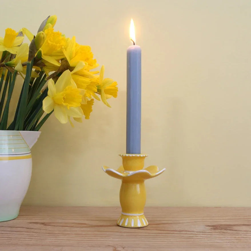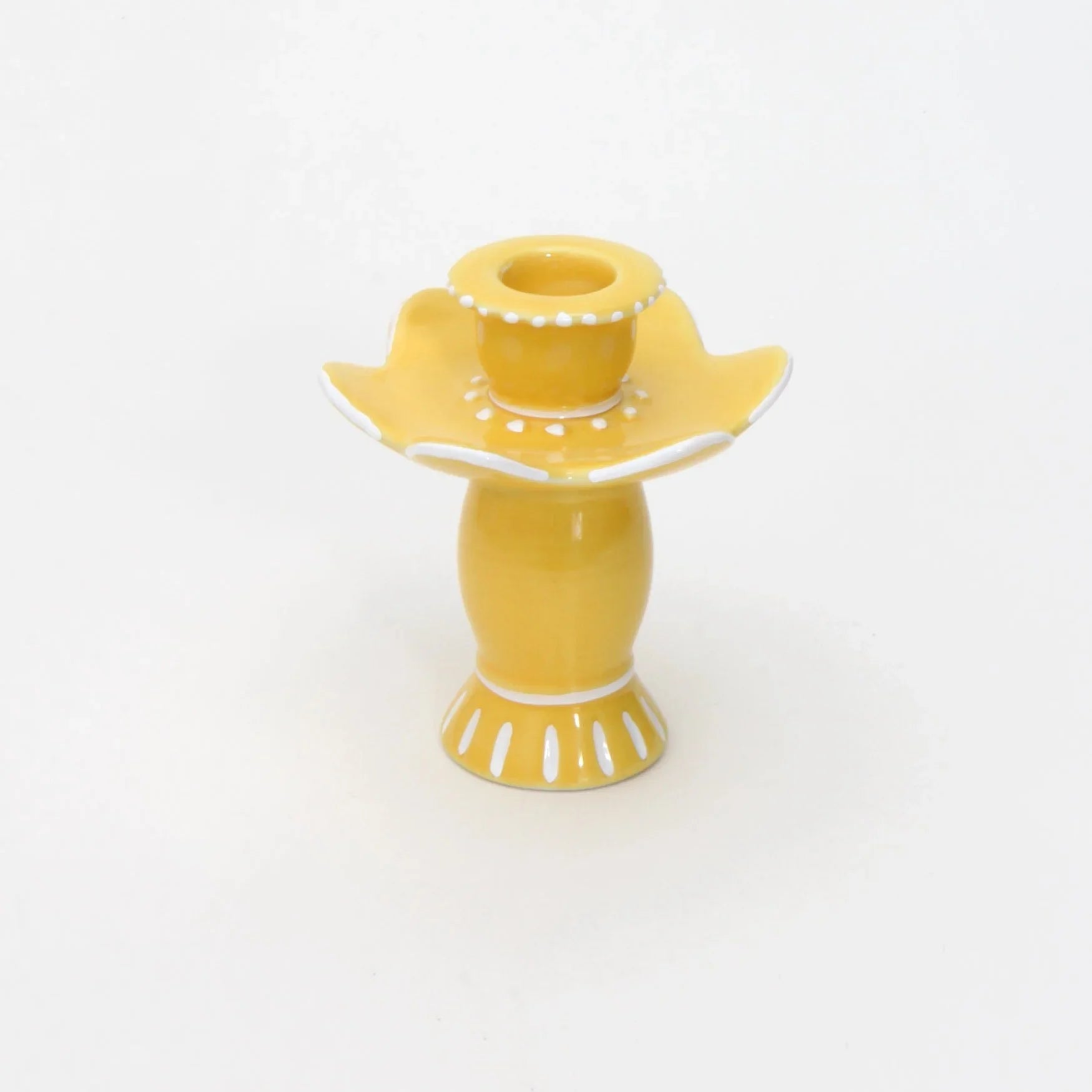 Gisela Graham - Ceramic Candle Holder - Yellow Fiesta