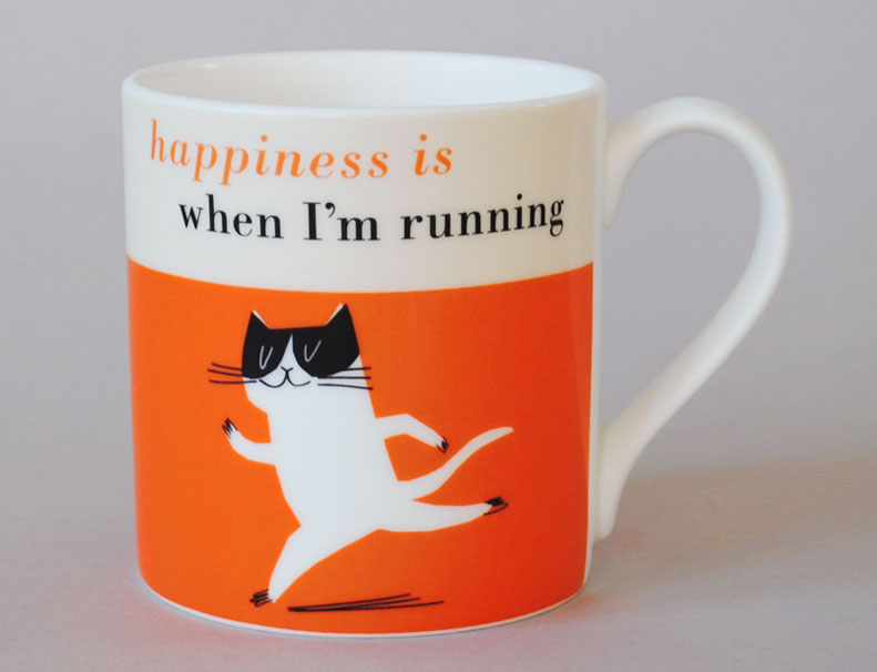 Repeat Repeat - Happiness Running Cat Bone China Mug - Orange