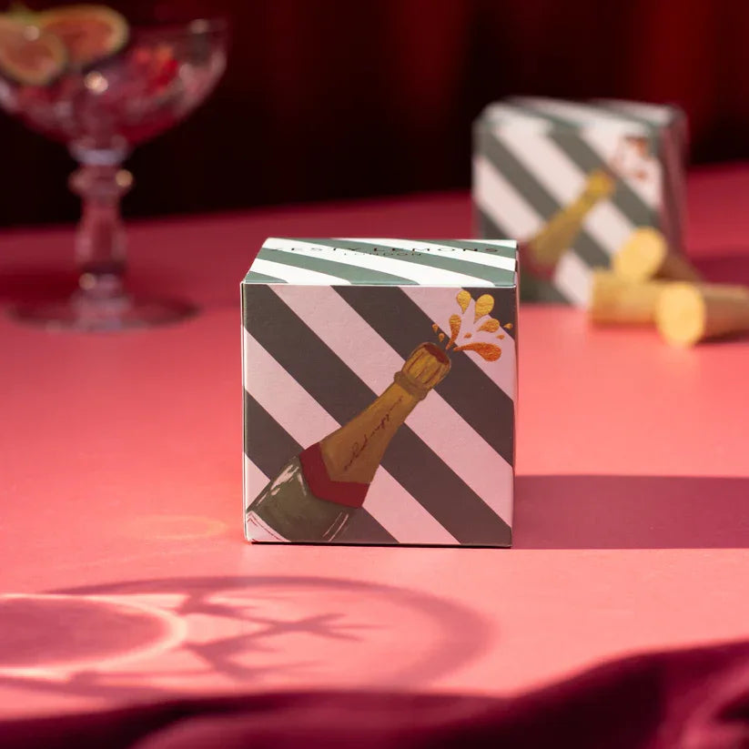 Each box contains two of our best-selling ceramic tea light vessels, filled with a cosy seasonal scent and designed to be repurposed long after the wax is gone. Presented in a playful 3D Christmas-themed gift box, containing artist illustrations and a champagne cork decoration, it’s a charming keepsake in itself - no wrapping required.