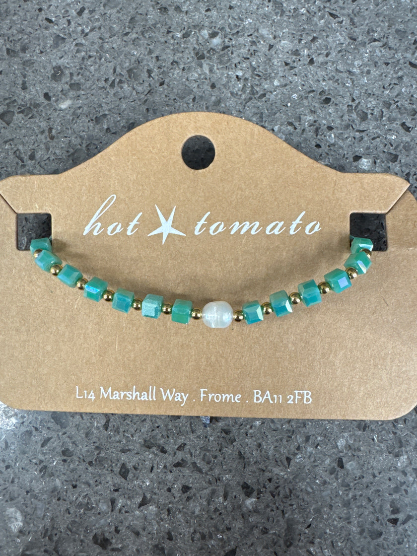 Friendship Bracelet Crystal Stainless Steel & Gold Plate - Jade Green/Pearl