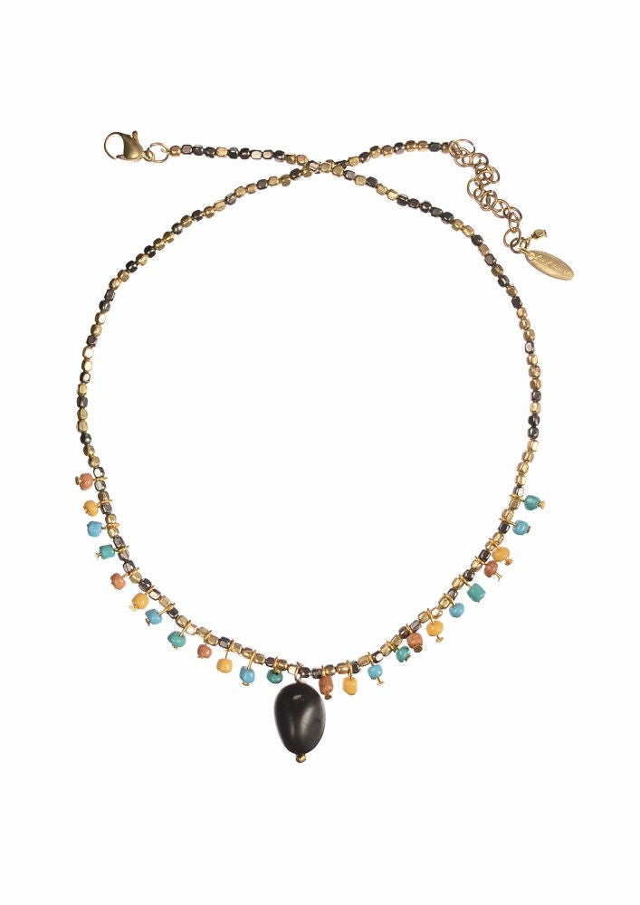 Seed Bead Trim With Stone Drop - Mustard/Blue/Gold