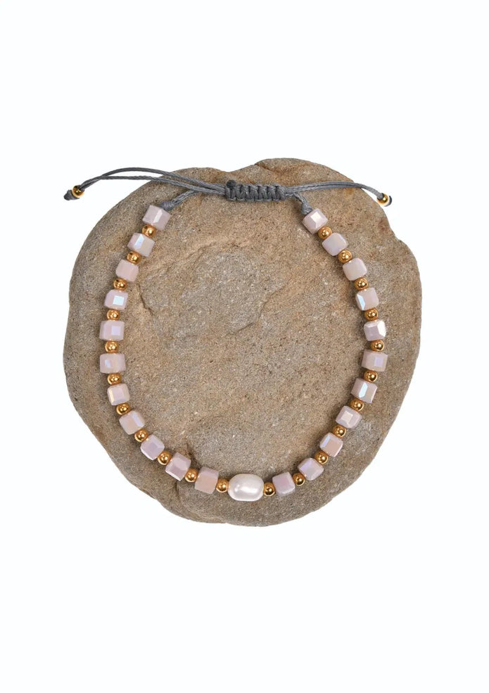 Friendship Bracelet Stainless Steel & Gold Plate - Lilac & Pearl