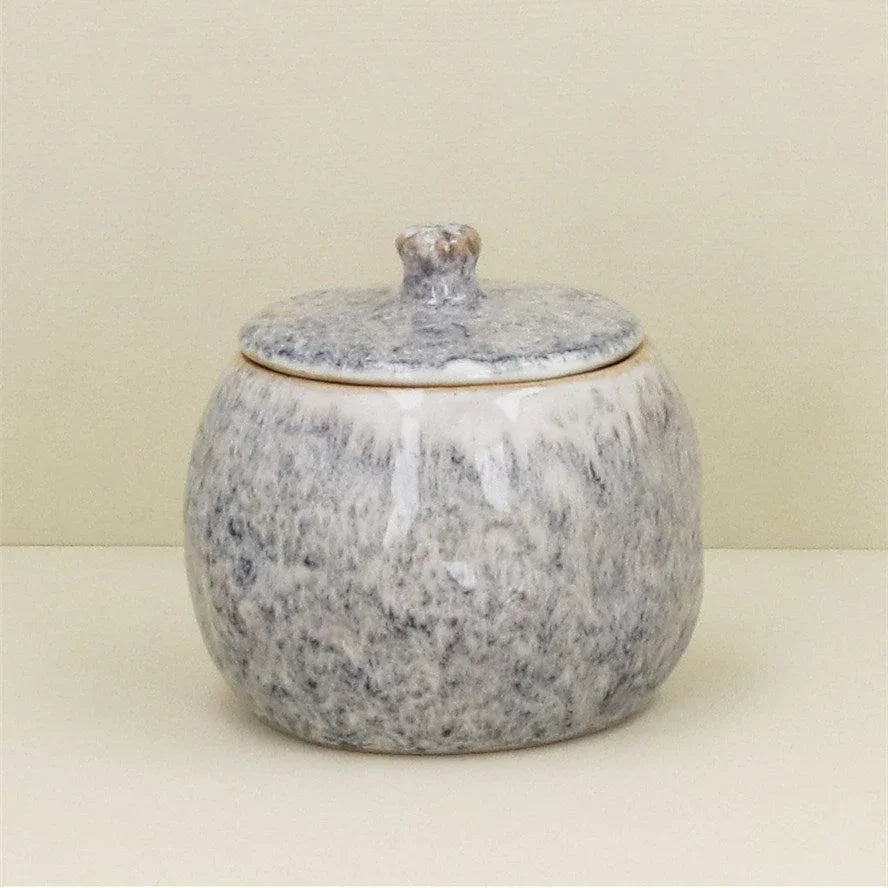 Made of sturdy stoneware and featuring a lid, this 10cm pot is perfect for storing small items.