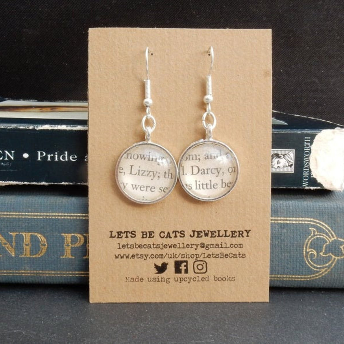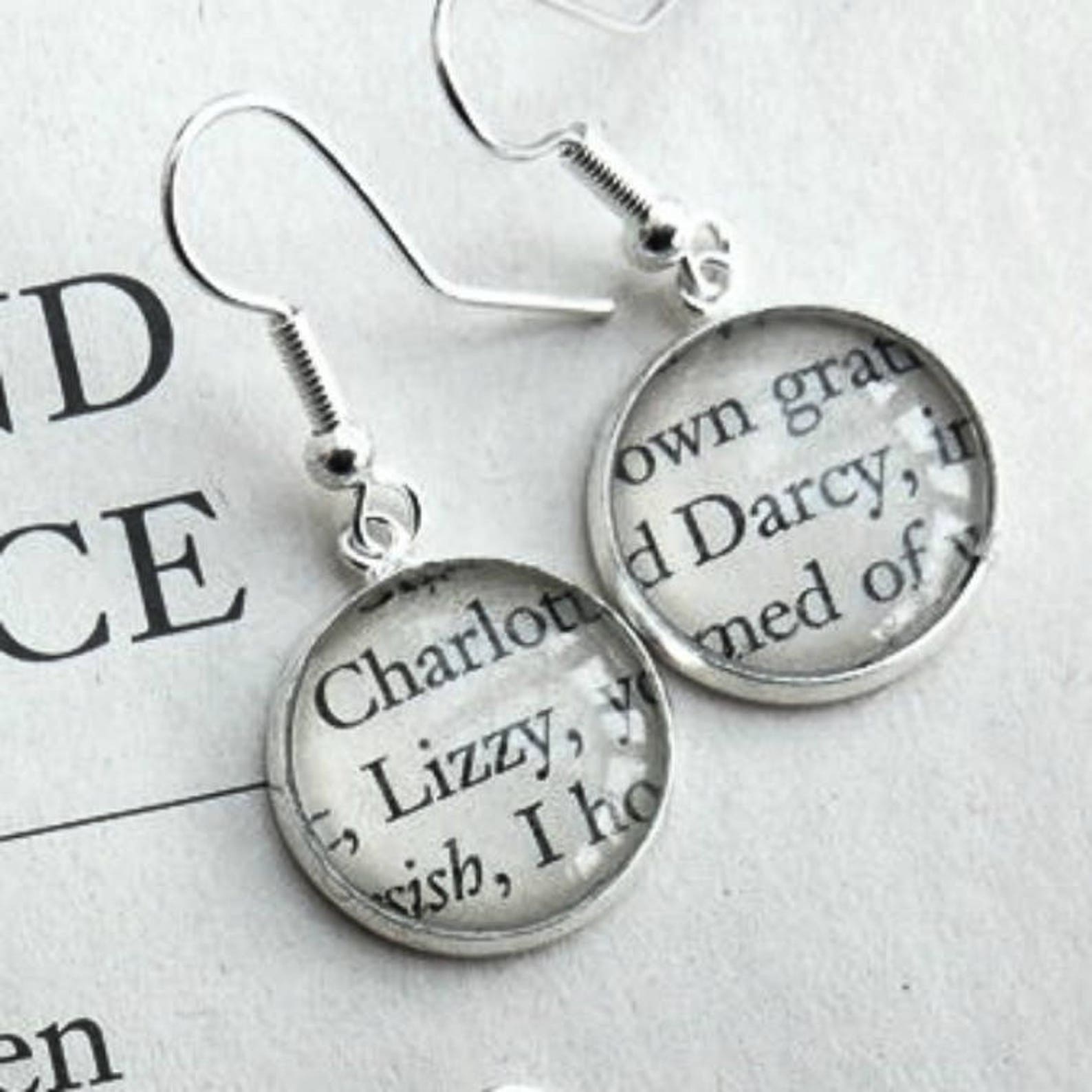 These Lizzy and Darcy earrings are perfect for fans of Jane Austen's Pride and Prejudice. They are ideal for the book lover, a perfect literary gift.