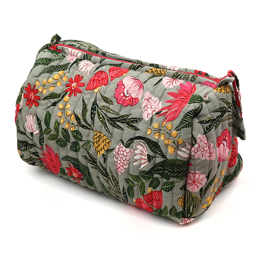 POM - Pink/Sage Mix Tropical Botanical Quilted Toiletry/Make Up Bag - Large