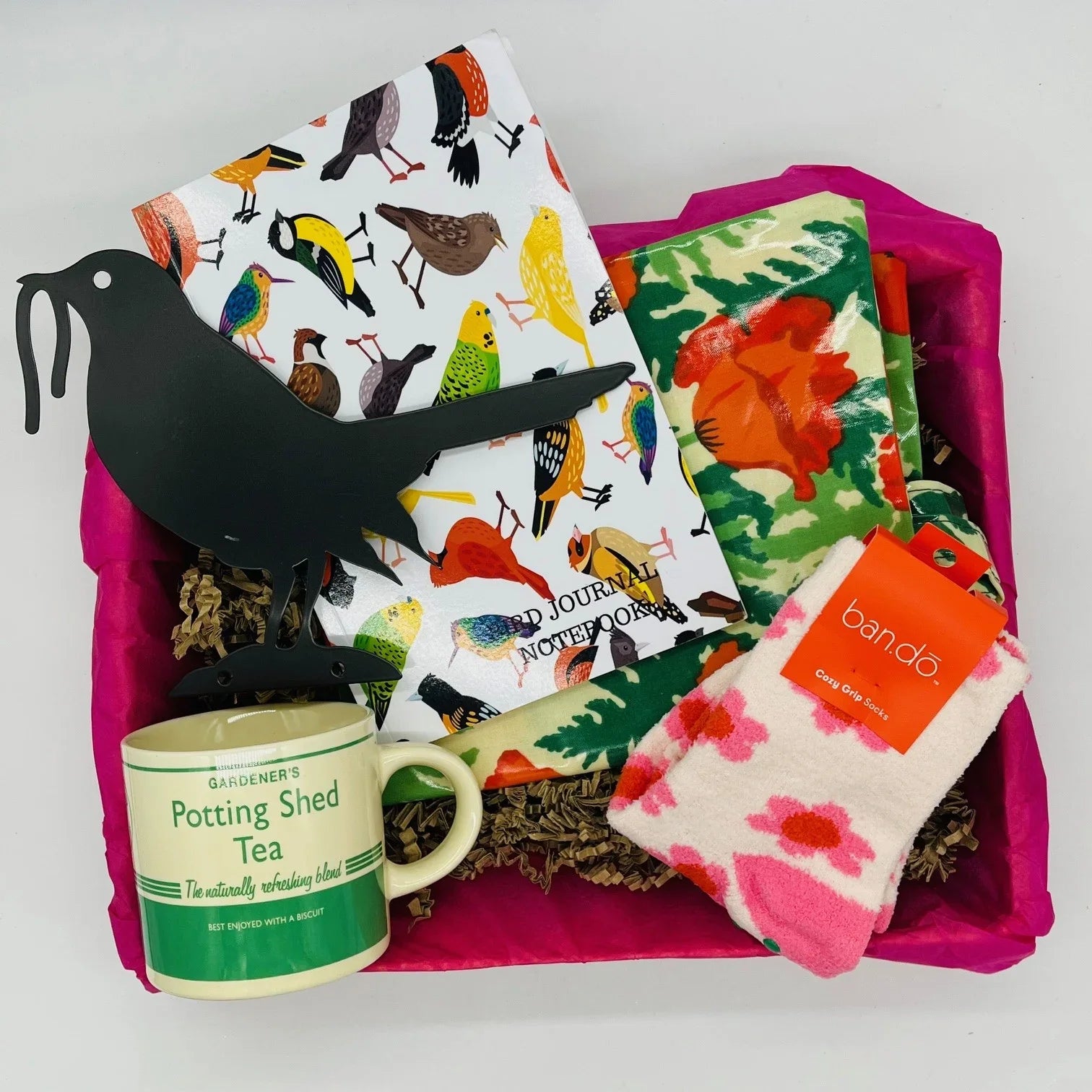 With this gorgeous individual one-off 'Comfy Bird Watching ' gift box, our design team carefully pairs beautiful as-new accessories on a theme of comfortable bird watching just in time for spring.