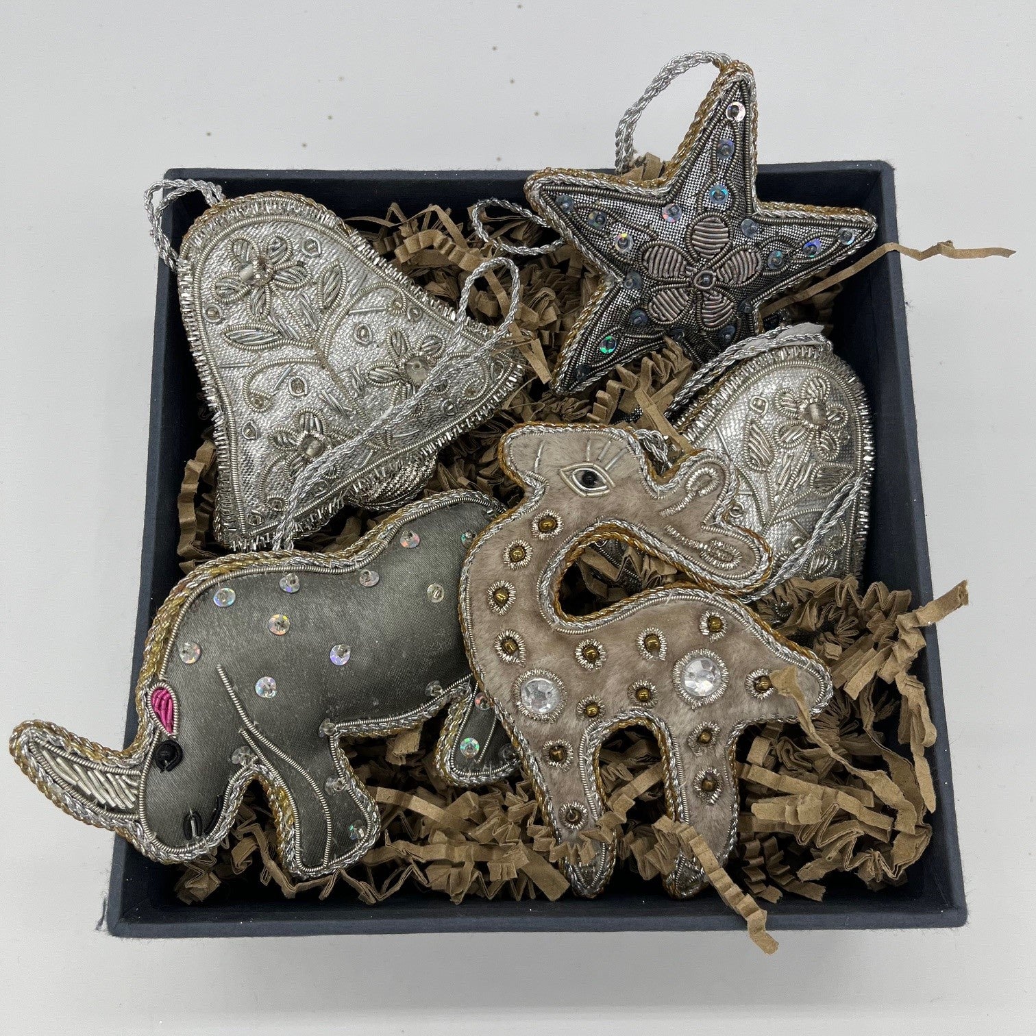 2 x Bells, 2 x Stars 1 x Deer 1 x Rhino
