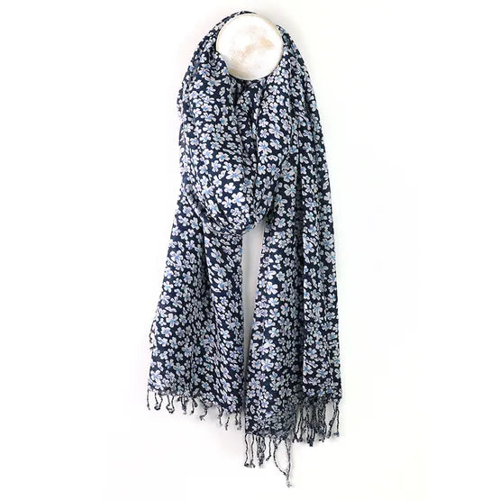 POM - Navy Mix Ditsy Floral Print Modal Scarf