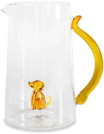 Borosilicate glass jug with coloured glass dog decoration inside. Each subject is handcrafted from blown glass, making each decanter unique.