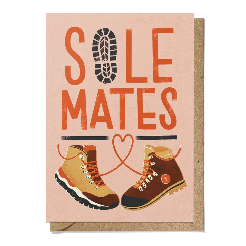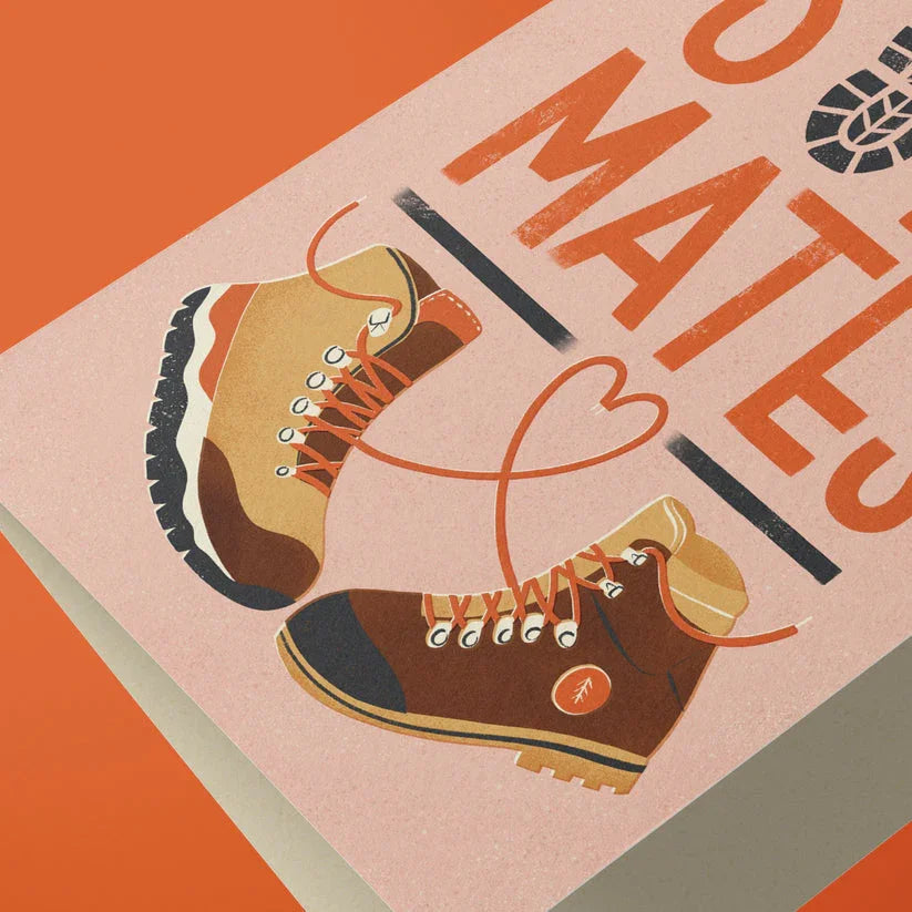 Wish your adventurous partner a Happy Valentine's Day or Happy Anniversary with this fun, retro style hiking boot greeting card. Or you can congratulate an outdoor loving couple on their engagement or wedding.