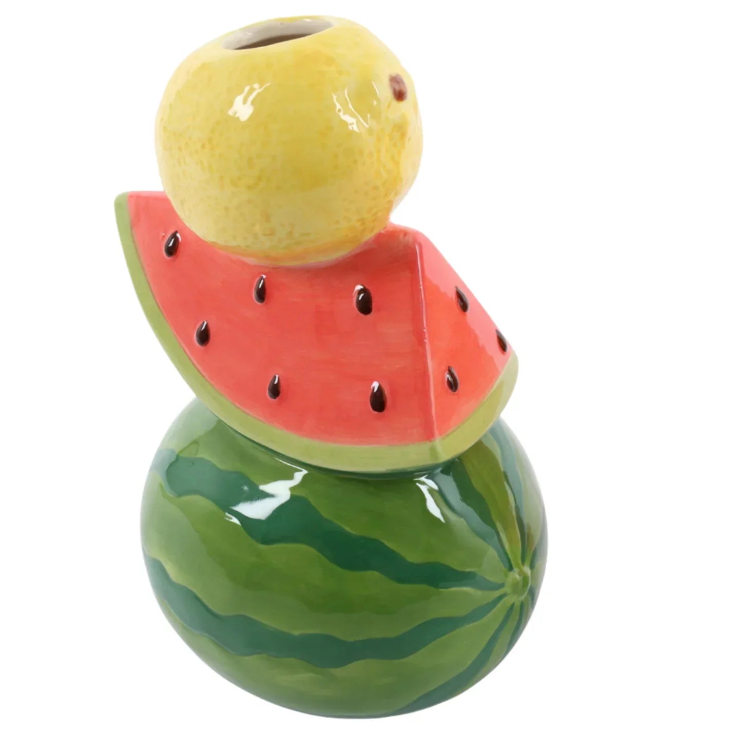 The perfect bud vase for a couple of stems of your favourite flowers or foliage, the design features a towering trio of whole watermelon, slice of watermelon and lemon.