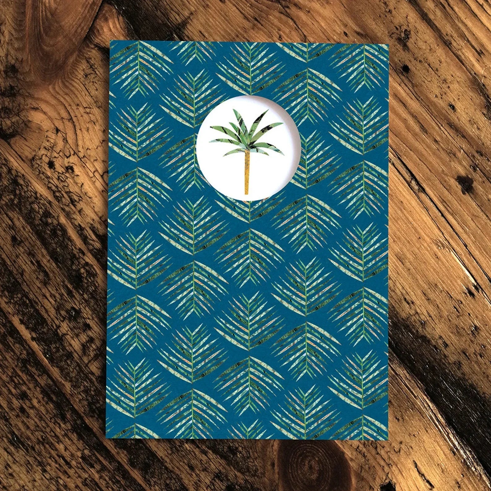 Palm Tree with Botanical Palm Leaves Pattern Illustrated Greeting Card