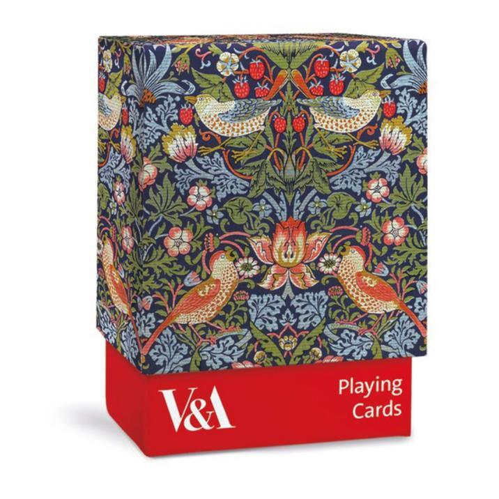 This beautiful set of playing cards designed by William Morris in 'Strawberry Thief' inspired by the V&A.